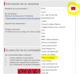 - Nombre de su proveedor: Siempre debe seleccionar, utilizando el cursor hacia abajo: TotalEnergies Marketing España